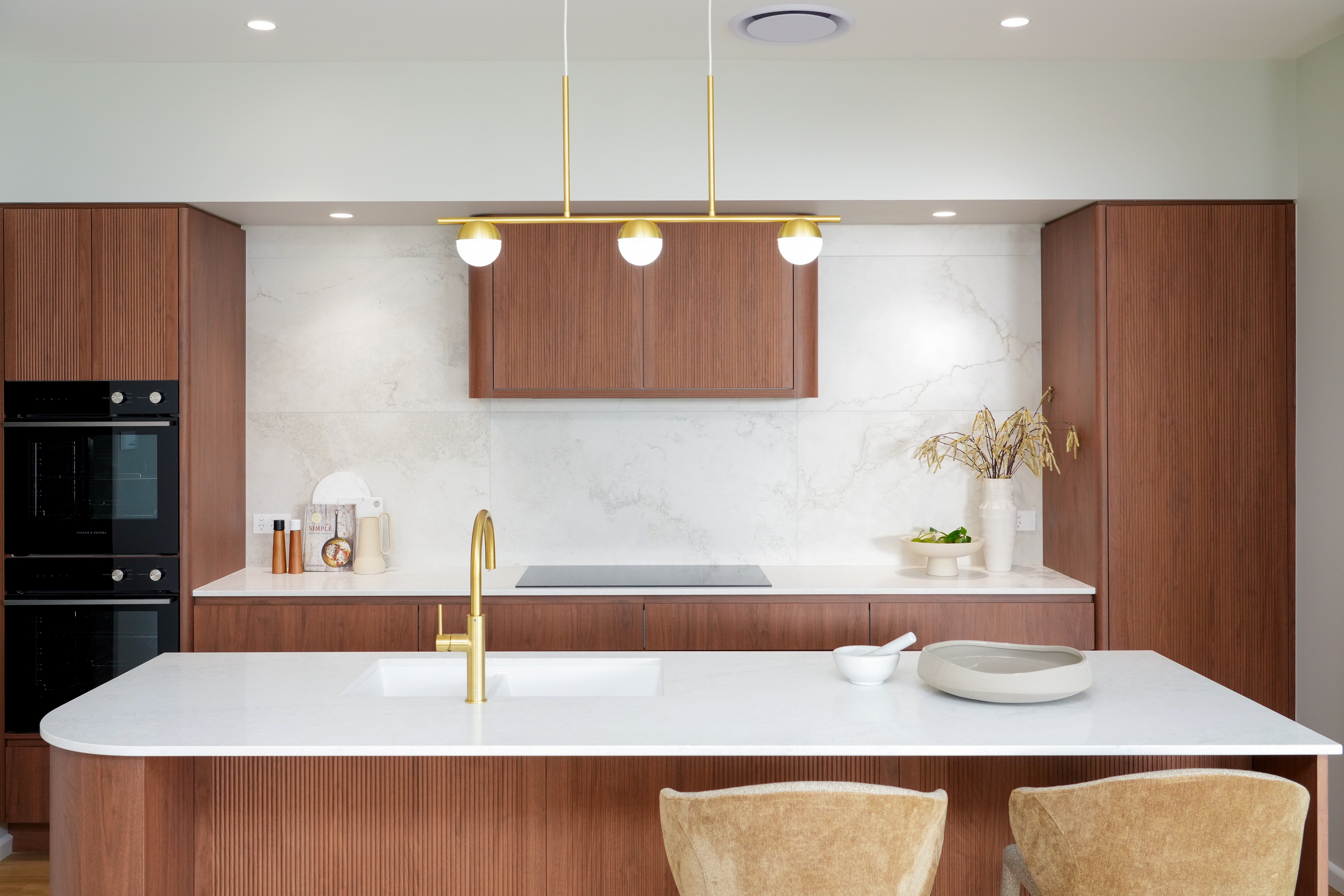 Texture is having a major moment. Think bouclé cushions, woven rugs, natural linen, ribbed cabinetry and matte finishes. These layered elements help create homes that feel lived-in, cosy and full of character.